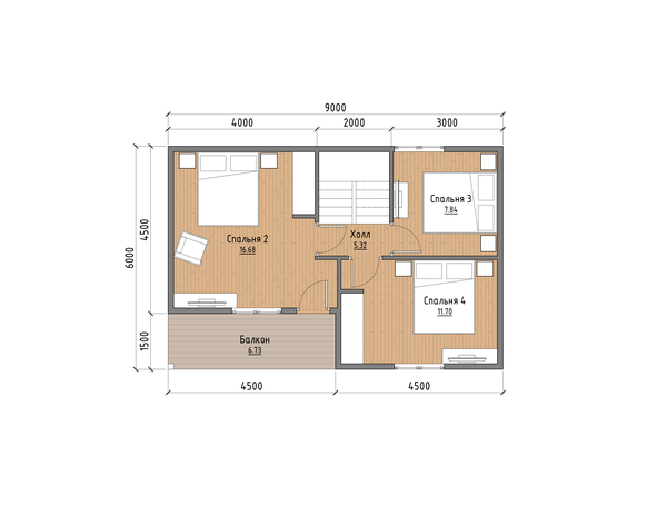 Дом из бруса 6х9м. с террасой и балконом. Дм-57